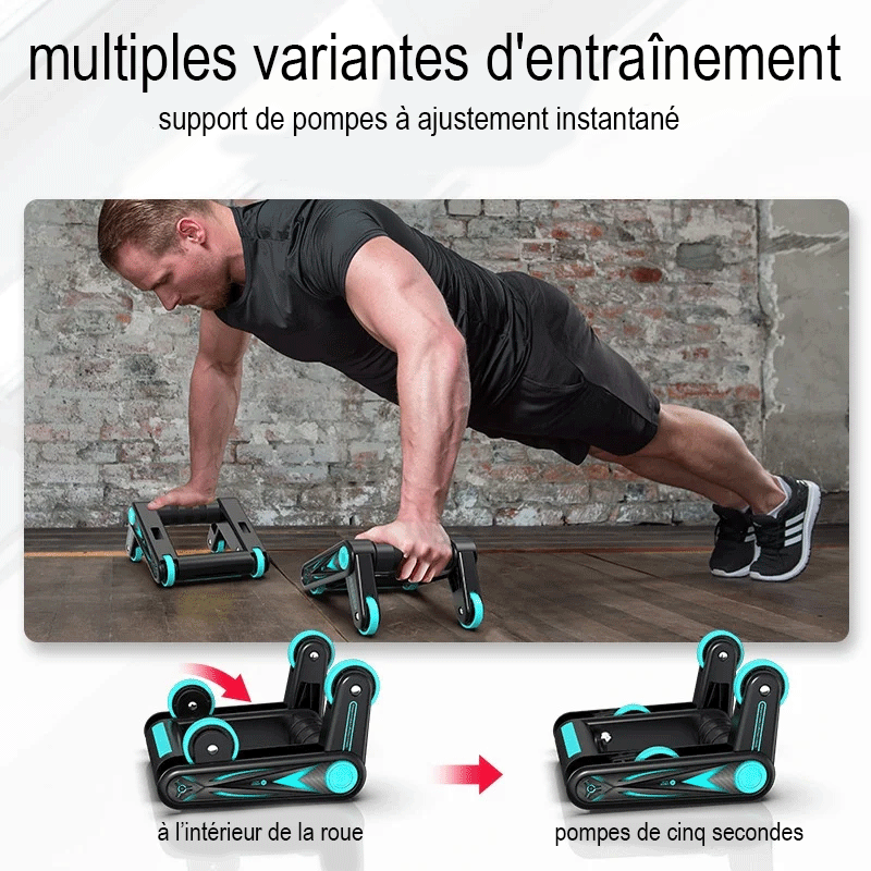 Avec 10-15 minutes d'exercice 3-4 fois par semaine, premiers résultats visibles dès 3-4 semaines. Le mouvement de roulement engage plus de muscles qu'un exercice abdominal classique !
