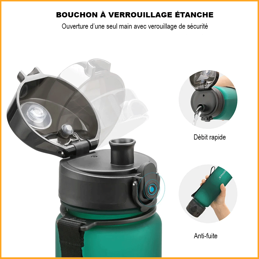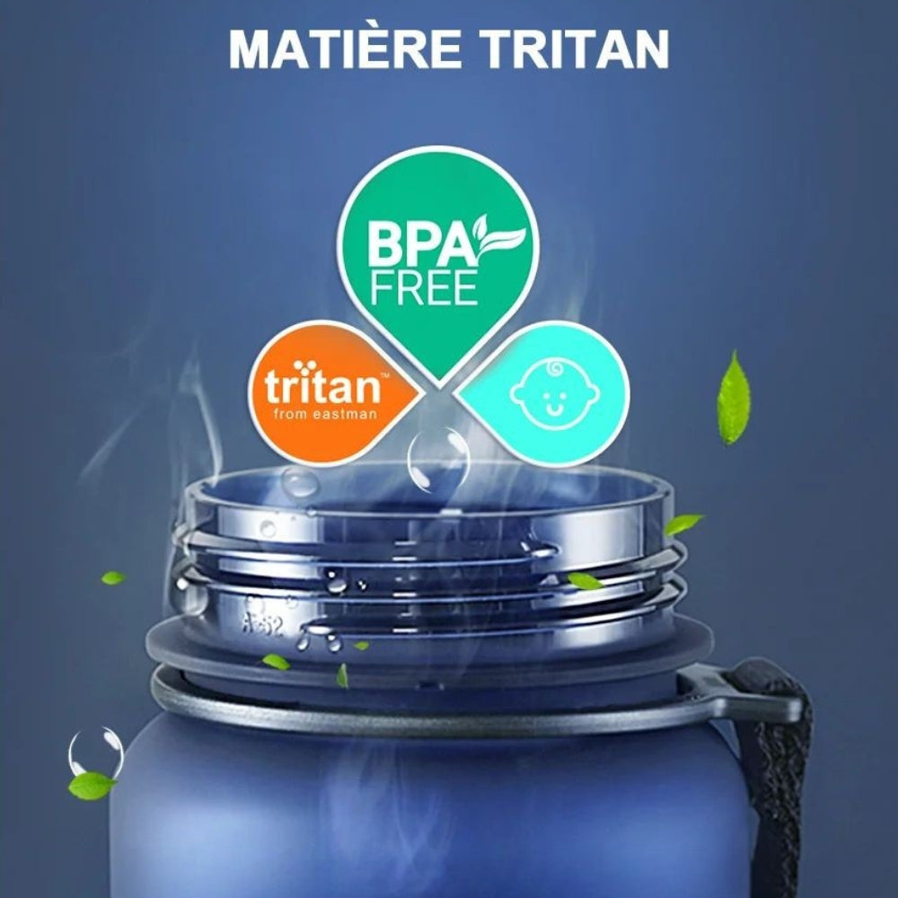 La gourde Hydrago™ est fabriquée à partir de plastique Tritan de première qualité, exempt de BPA et de produits chimiques nocifs. Ce matériau de qualité alimentaire garantit une hydratation saine et sûre.