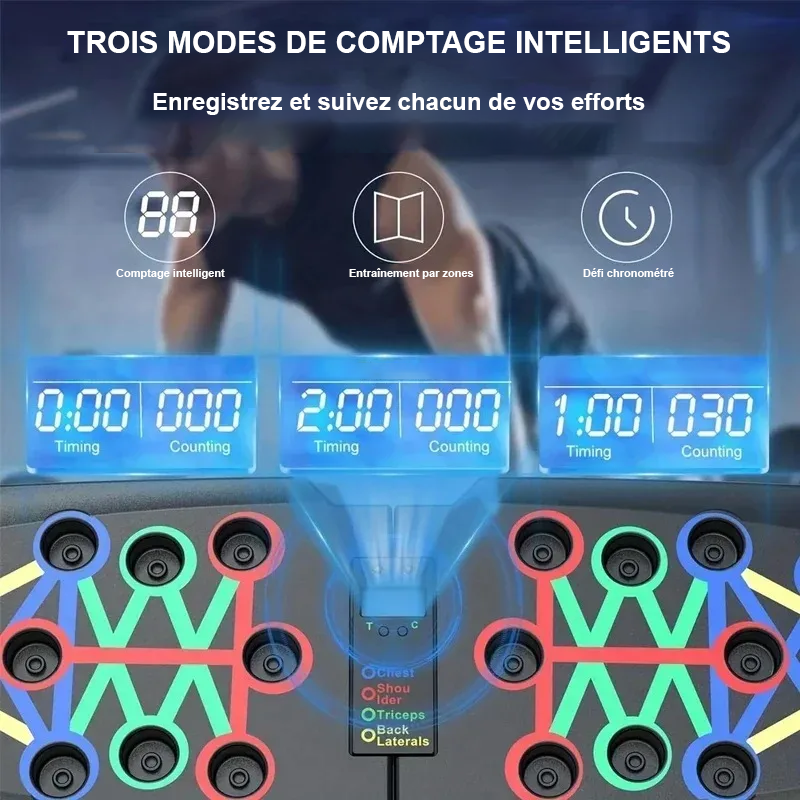 - 3 modes : Comptage libre, Objectif temps, Objectif répétitions